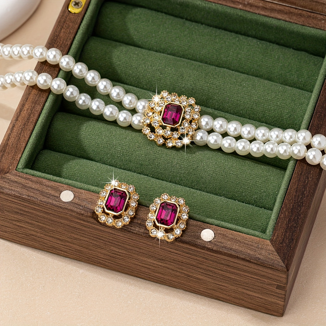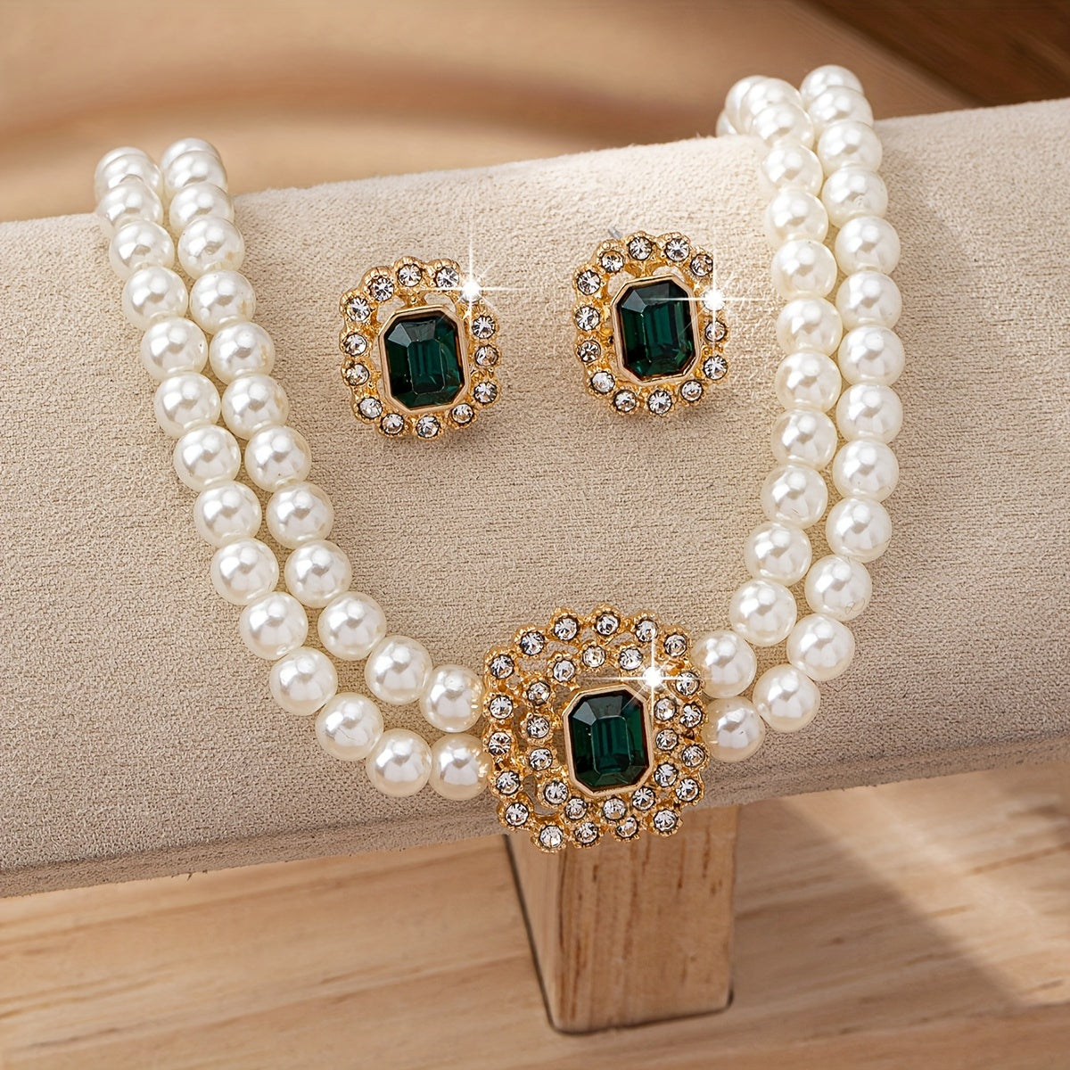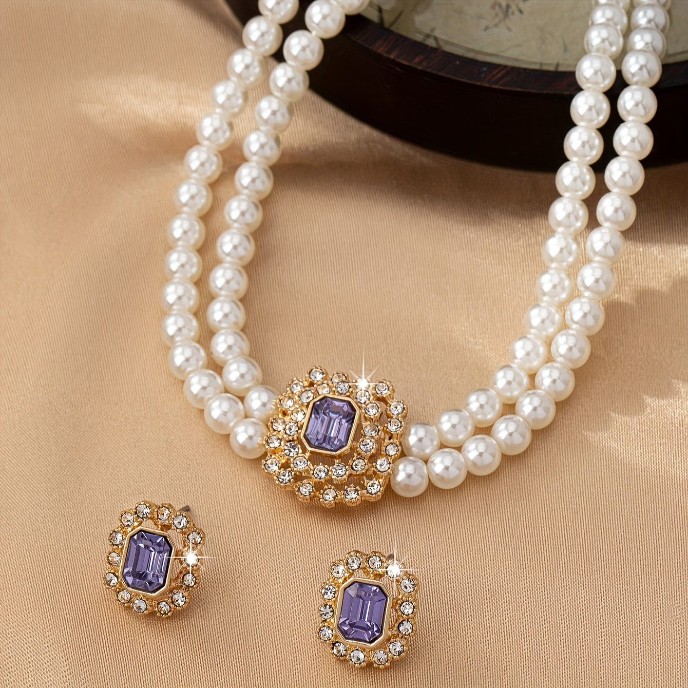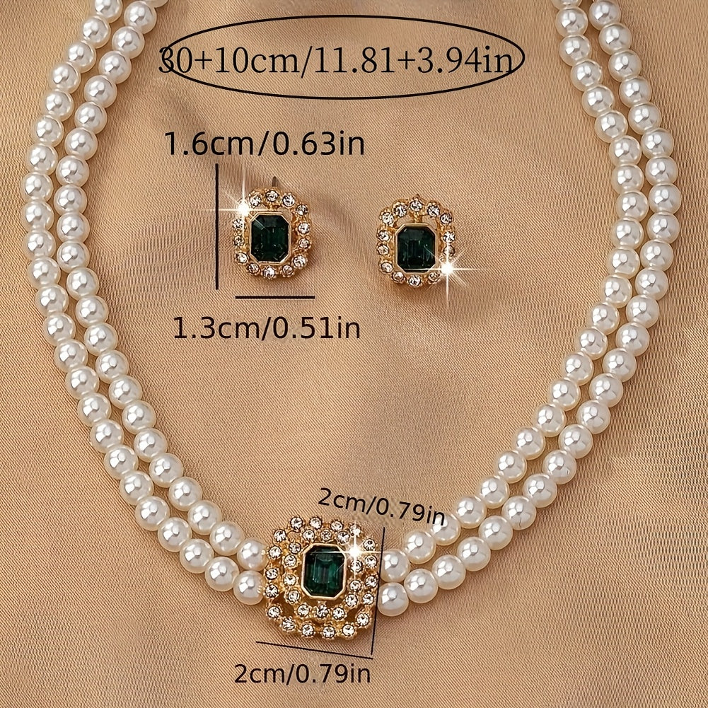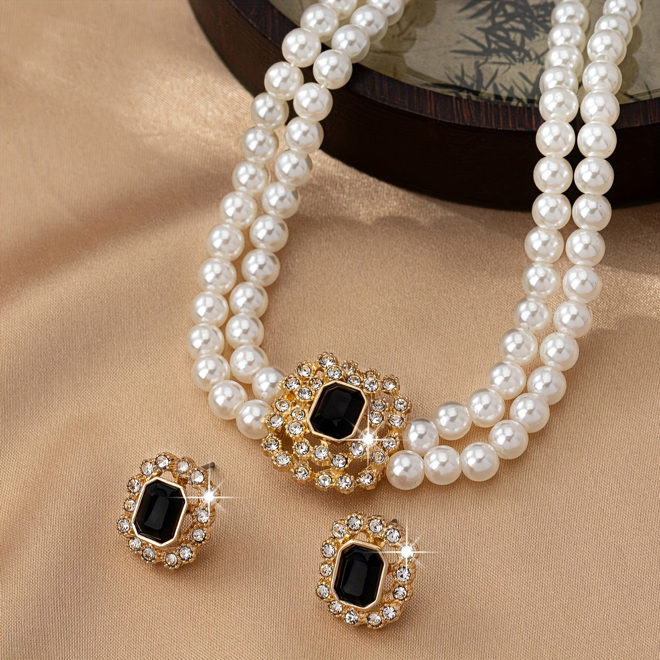 Luxury Elegant Double Row Faux Pearl Necklace Set