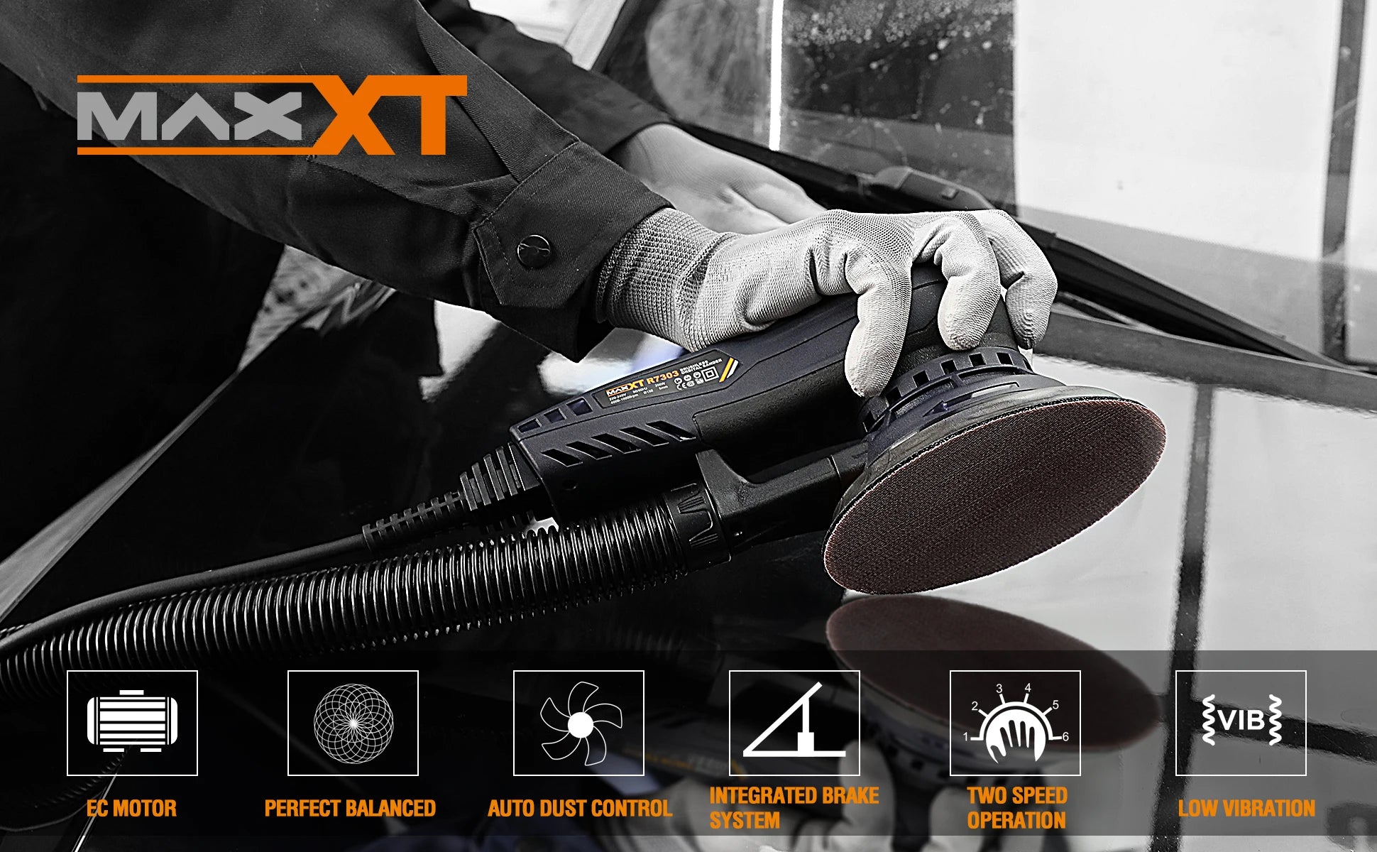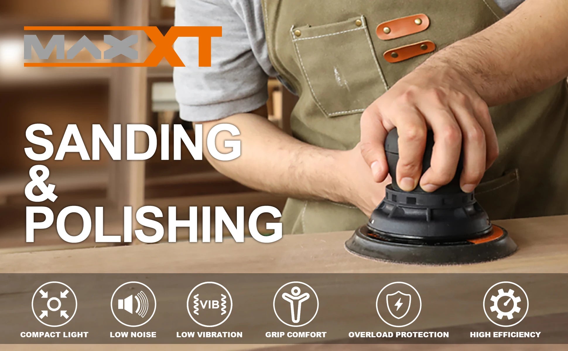 【Low Noise Sander】MAXXT random orbital sander is equipped with a 3A 350W brushless EC motor with stable speed, low noise, low maintenance requirements and high efficiency. The machine is lightweight and low-noise for flexible and low-fatigue work.