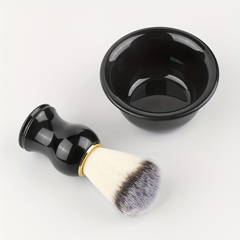 SKU:601099539696312-two-piece set (golden-rimmed shaving brush + small black bowl)
