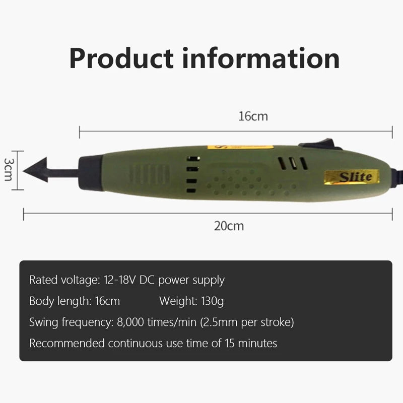 Expertly designed in a pen type, this 18W mini electric sander is ideal for precise polishing and grinding in DIY projects, model making, and mold work. With adjustable speed settings, it offers versatility for a wide range of tasks. From working on models and molds to smoothing grooves, this electric grinder delivers efficient and controlled polishing, making it a necessary tool for both hobbyists and professionals.