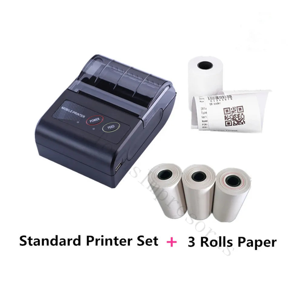 - Includes the standard package, a PU case, and 3 rolls of white thermal receipt paper.
