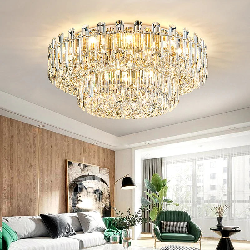 Illuminate your living room with sophistication using these LED ceiling lights. Featuring clear crystal balls, they exude luxury and elegance. Available in golden or silver finishes, they complement any home decor style. Perfect for adding a touch of modern flair, these plafonniers are a must-have for your 2024 home decor update. Enjoy the perfect blend of style and functionality with these new, luxurious lighting fixtures.
