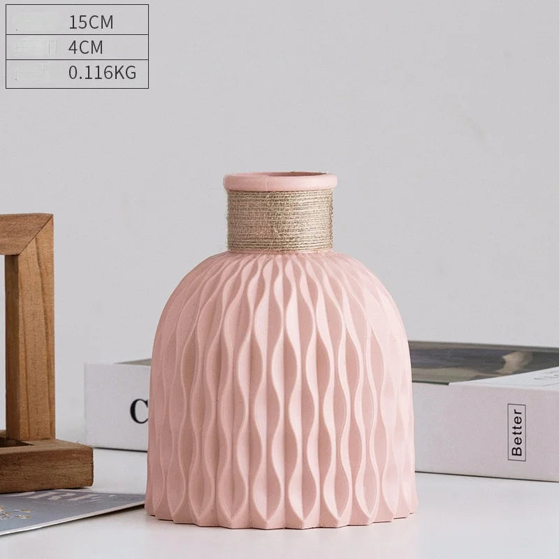Elevate your living room décor with our modern white and pink plastic vase. This versatile piece serves as a charming ornament and flower arrangement vessel, adding a touch of Nordic style to your home. Enhance your space with its sleek design and versatile functionality, perfect for showcasing your favourite blooms or as a standalone decorative accent.