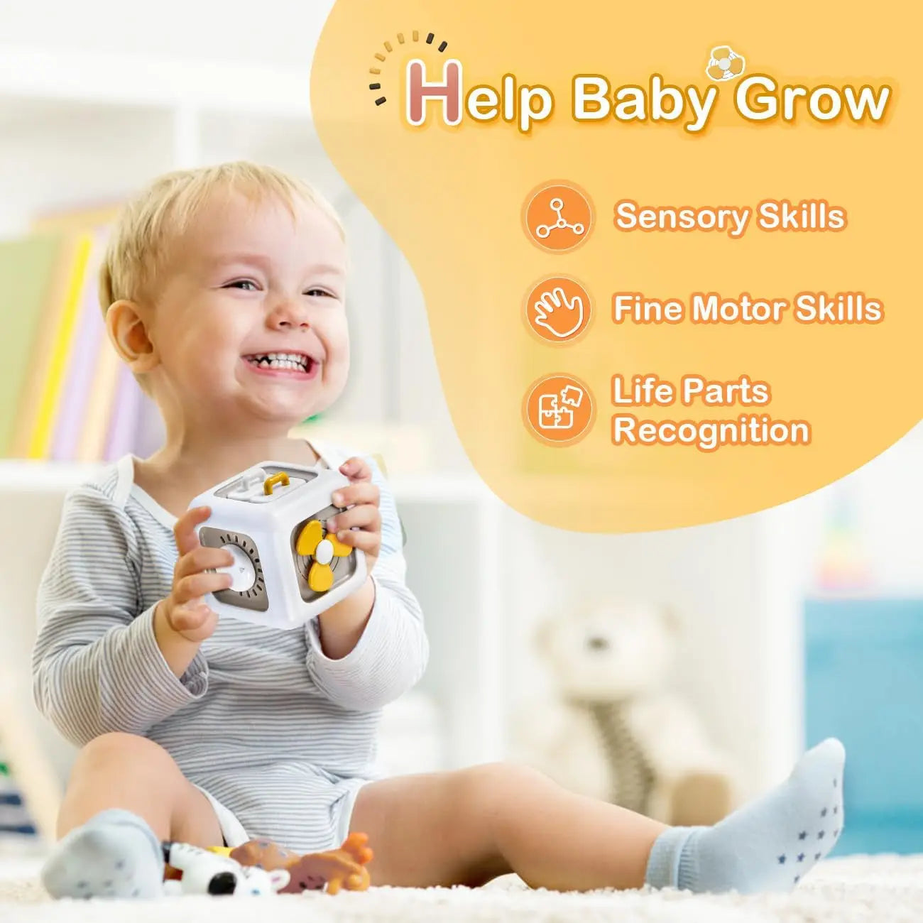 Montessori Baby Cube Toys Sensory Busy Board Fine Motor Skills Activity Cube , 6 in 1 Multipurpose Educational Learning Toys
