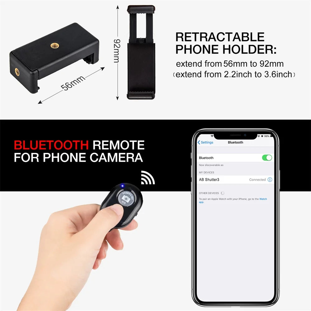 Capture the perfect shot with the Nagnahz Tripod for Phone. This versatile 150cm/130cm tripod stand comes equipped with a Bluetooth remote, making it easy to take videos and photos with your phone. Compatible with most cell phones, including iPhone, HUAWEI, and Xiaomi, this tripod stand is perfect for capturing memories and creating stunning photography. Elevate your creative potential with the Nagnahz Tripod for Phone.