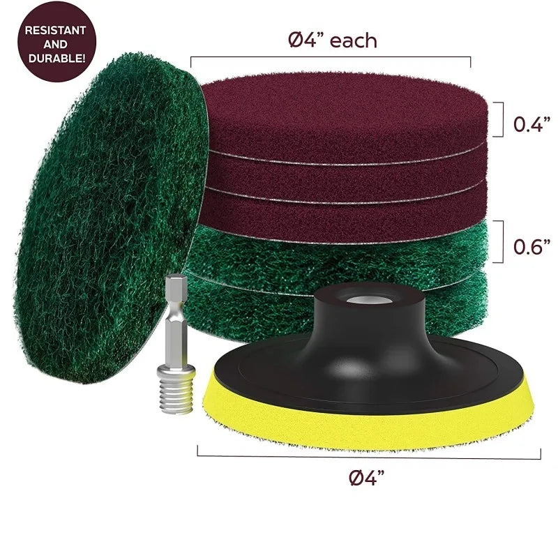 ❤ Fits Any Cordless Drill - 1/4-inch (6mm) quick change metal shaft that fits any cordless drill. Package includes a drill attachment, 3 red pads and 3 green pads. Drill not Included.