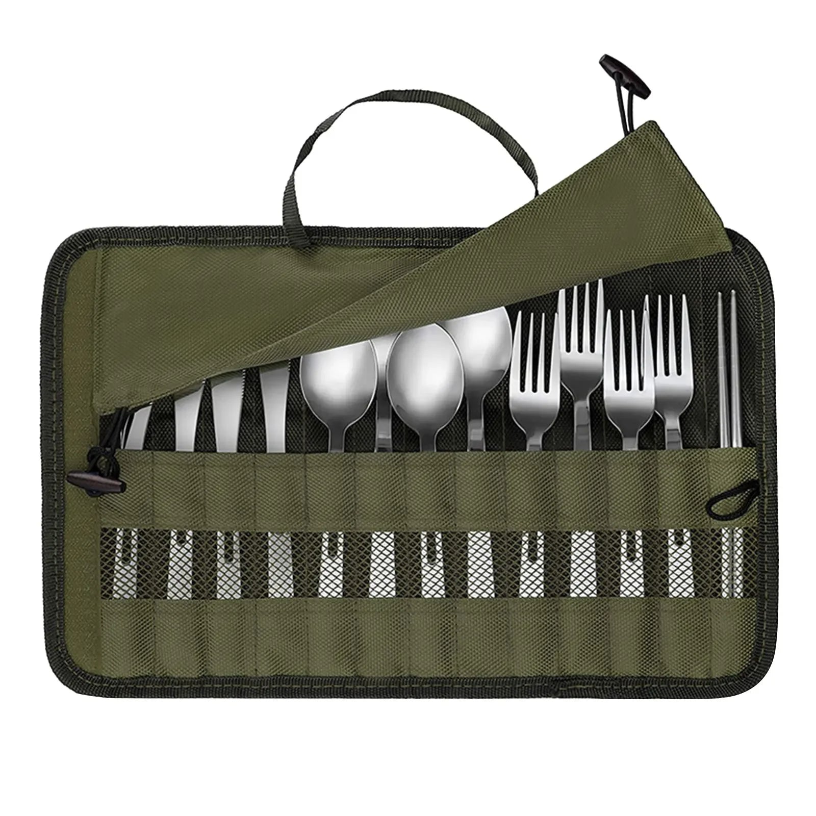 Outdoor Camping Cutlery Storage Bag Portable Roll Up Pouch Bag Cutlery Storage Water Resistant Case For Forks Spoons Chopstick
