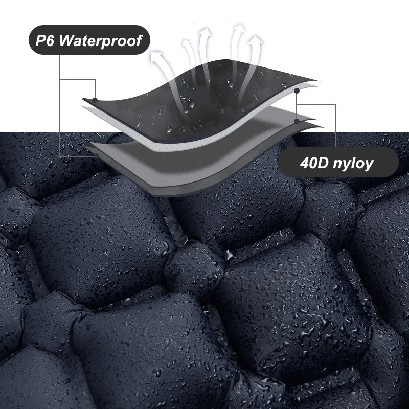 The PACOONE Outdoor Camping Sleeping Pad is an innovative and efficient solution for a comfortable night's sleep while camping. Made from high-quality Nylon and TPU Seal Coating, this lightweight and compact inflatable mattress feature a fast filling air bag and attached pillow for added convenience. Perfect for outdoor adventures, it also doubles as a rescue cushion with a weight capacity of 500g. Package includes 1 air mattress and storage bag.