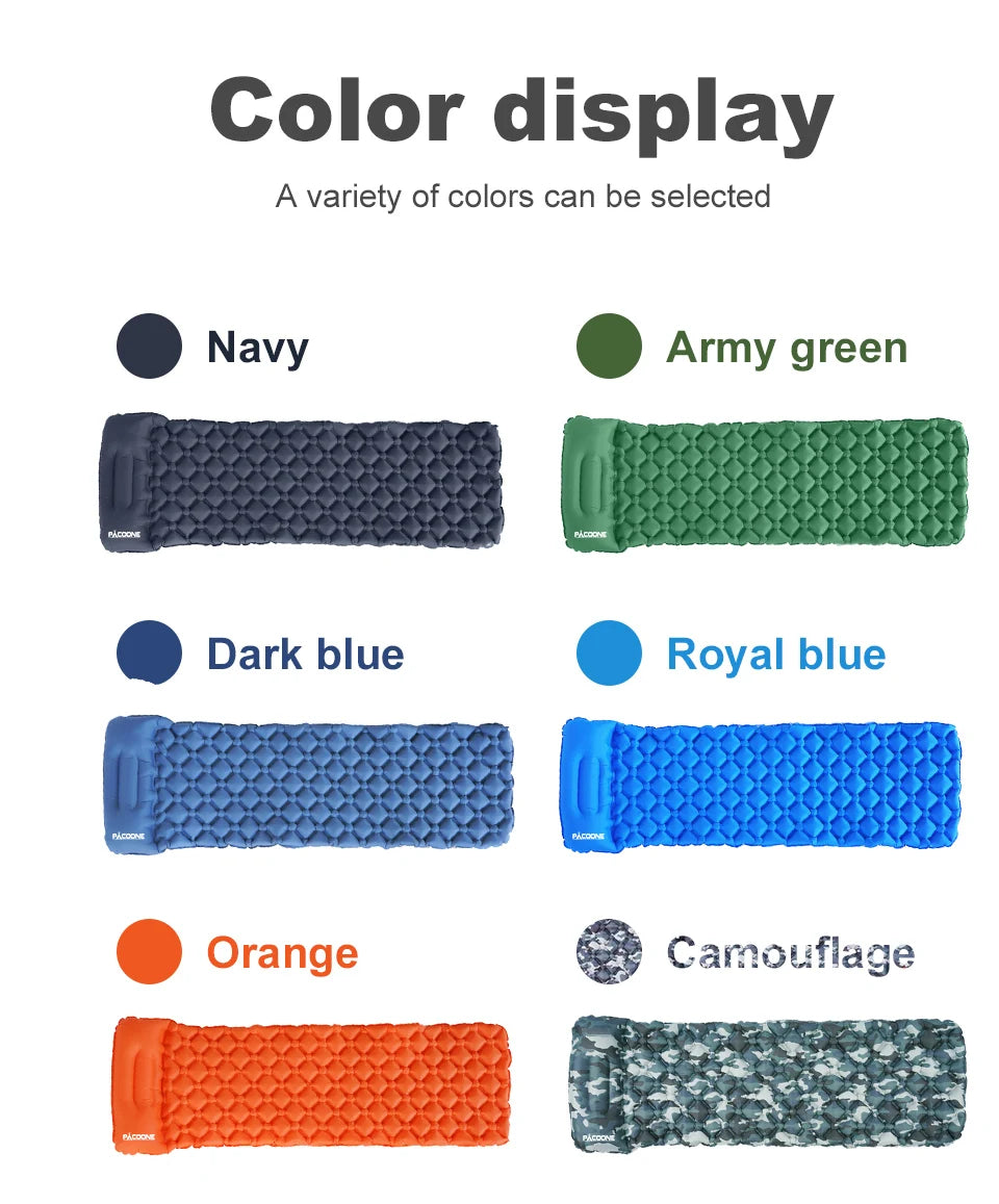 PACOONE Outdoor Camping Sleeping Pad | Folding Inflatable Mattress with Integrated Pillow