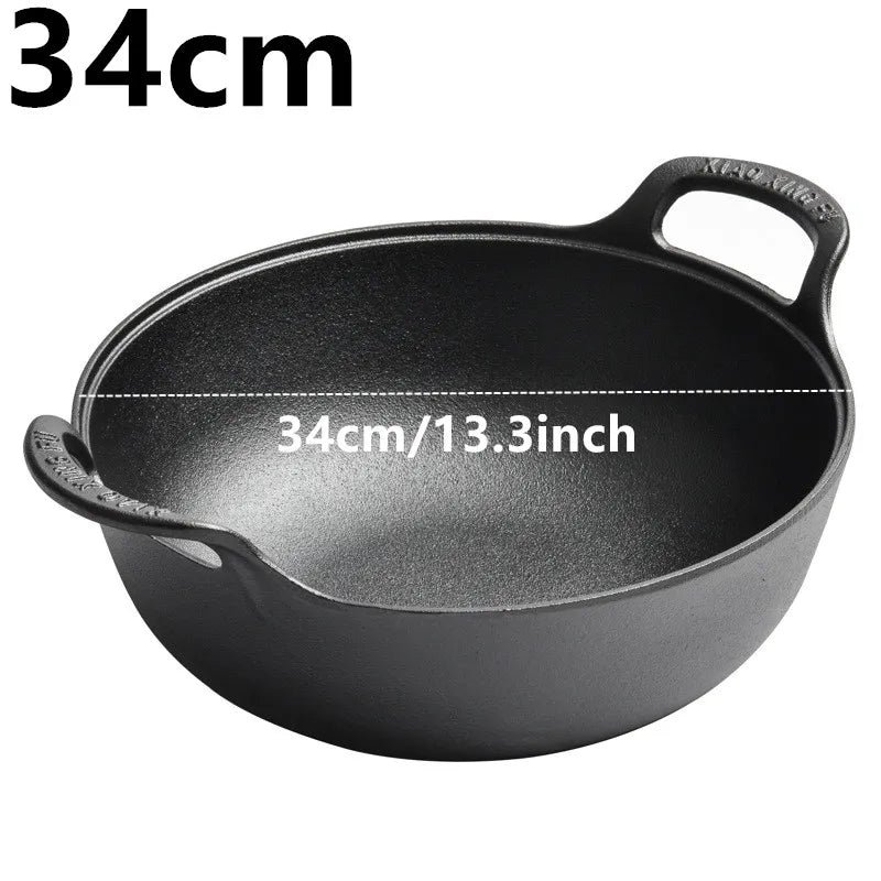 Upgrade your kitchen arsenal with our Pre-seasoned Cast Iron Casserole Dish. This versatile 34cm (13") saucepan is perfect for heavy soups, stews, casseroles, and even grilling and wok cooking. Featuring a loop handle for easy carrying and maneuvering, this durable Dutch oven is a must-have kitchen utensil. Crafted with high-quality cast iron and pre-seasoned for your convenience, it's ready to elevate your cooking game to new heights.
