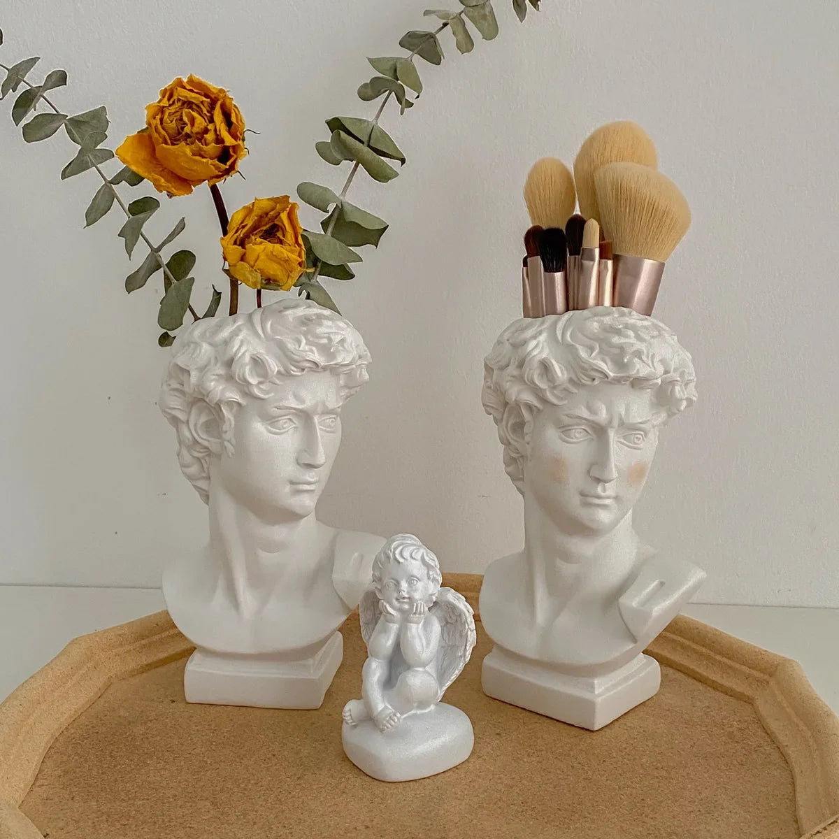 Add a touch of artistic flair to your home decor with our Resin David Vase Face Head. This unique decorative flowerpot is inspired by classical sculpture, featuring a modern twist. Perfect for displaying flower arrangements or greenery, it serves as an eye-catching centerpiece for any room. Elevate your interior decor with this stylish desktop art sculpture, blending classic and contemporary elements seamlessly.