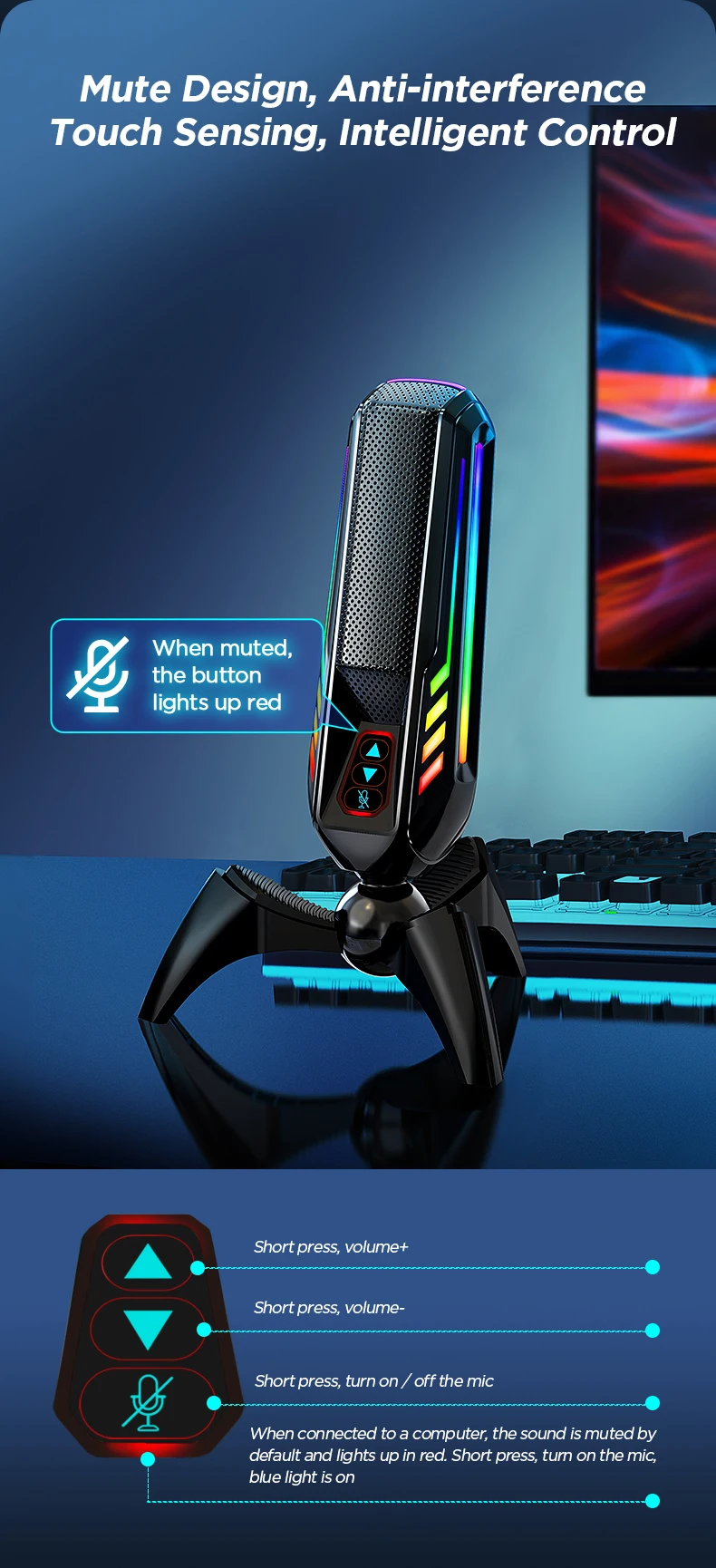 Customized RGB Gaming Microphone Condenser Desktop USB Noise Cancelling Podcast Microphone |