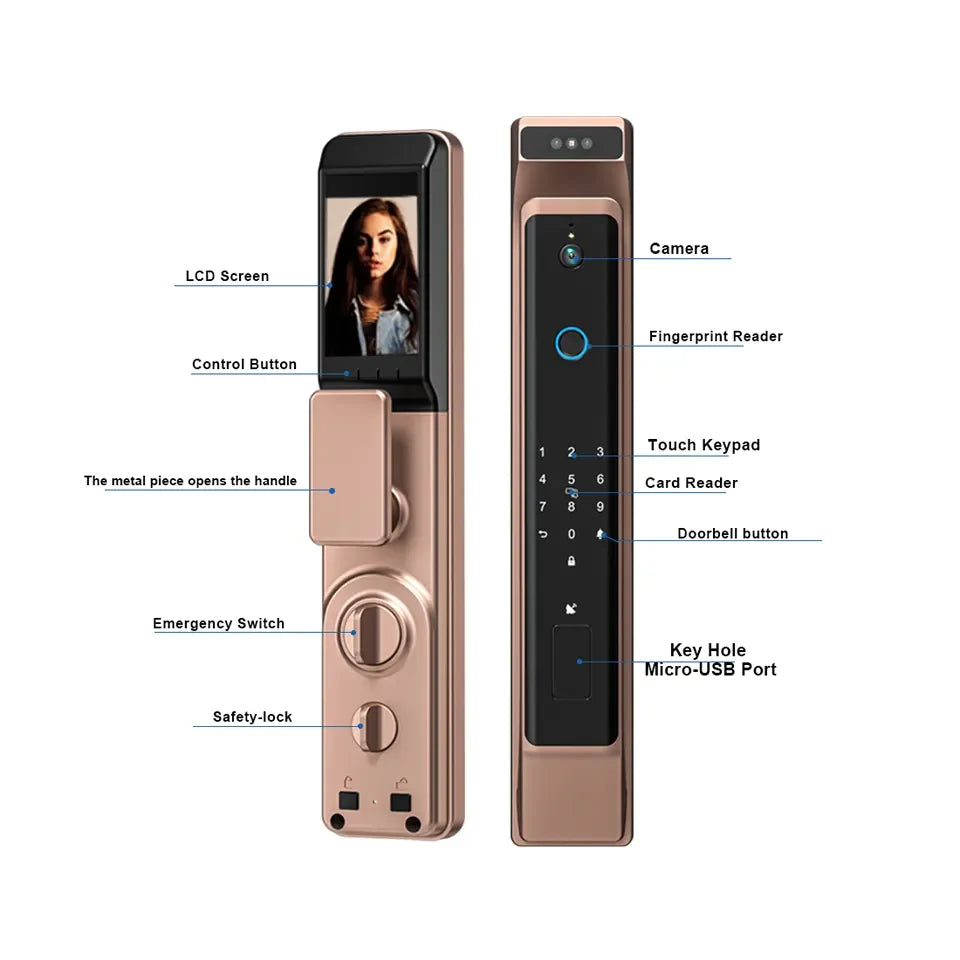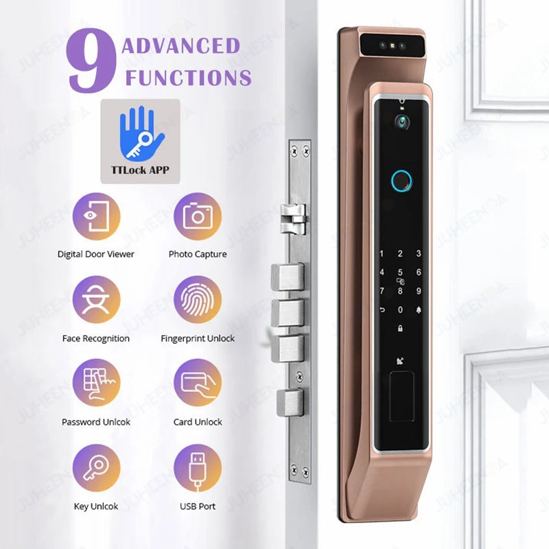 Introducing the latest in home security: TTLock APP. This advanced smart door lock features cutting-edge 3D face recognition technology, alongside digital fingerprint, password, IC card, and keypad options. Seamlessly control access via the app and enjoy enhanced security with a built-in camera. Upgrade your home security system with TTLock APP for unparalleled protection and convenience.