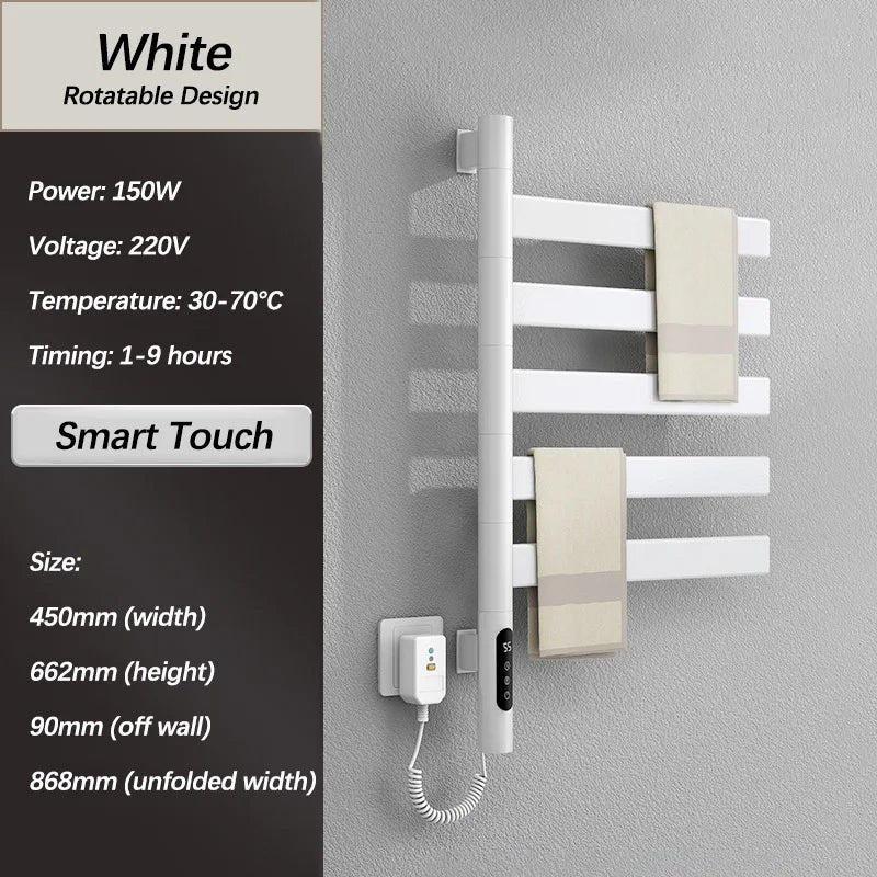 Experience the ultimate comfort and convenience in your bathroom with our Bathroom Fast Drying Towel Radiator. This smart electric heated towel rail is designed to provide you with warm and dry towels whenever you need them. With advanced timing functionality, you can easily set customized drying times to suit your preferences. Crafted from high-quality stainless steel with a lacquered finish, this towel radiator not only ensures fast drying but also adds a touch of elegance to your bathroom decor. Say goodbye to damp towels and hello to the luxury of freshly warmed towels every time you step out of the shower.