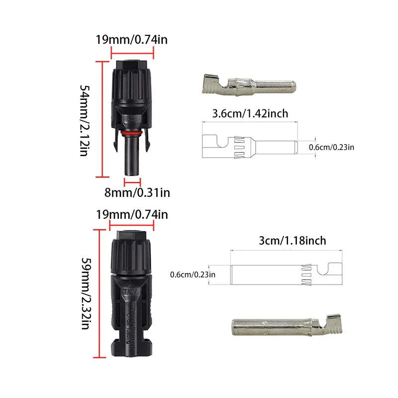 Enhance your solar system with our 10 pairs of connectors, each including male and female components, accompanied by a pair of spanners. Rated IP67 and capable of withstanding up to 1000Vdc, these connectors ensure reliable and secure connections for your solar panels. Simplify installation and maintenance with this comprehensive connector set, designed for seamless integration into your solar system.
