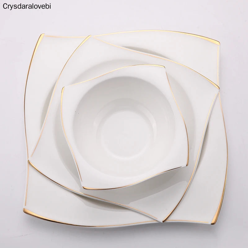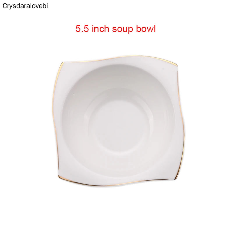 Experience luxury dining with this advanced bone porcelain dinnerware set. Featuring square dinner plates and soup bowls, each piece is crafted with high-quality white ceramic for an elegant touch. Elevate your dining experience with this sophisticated and durable dinnerware set, perfect for serving meals in style for any occasion.