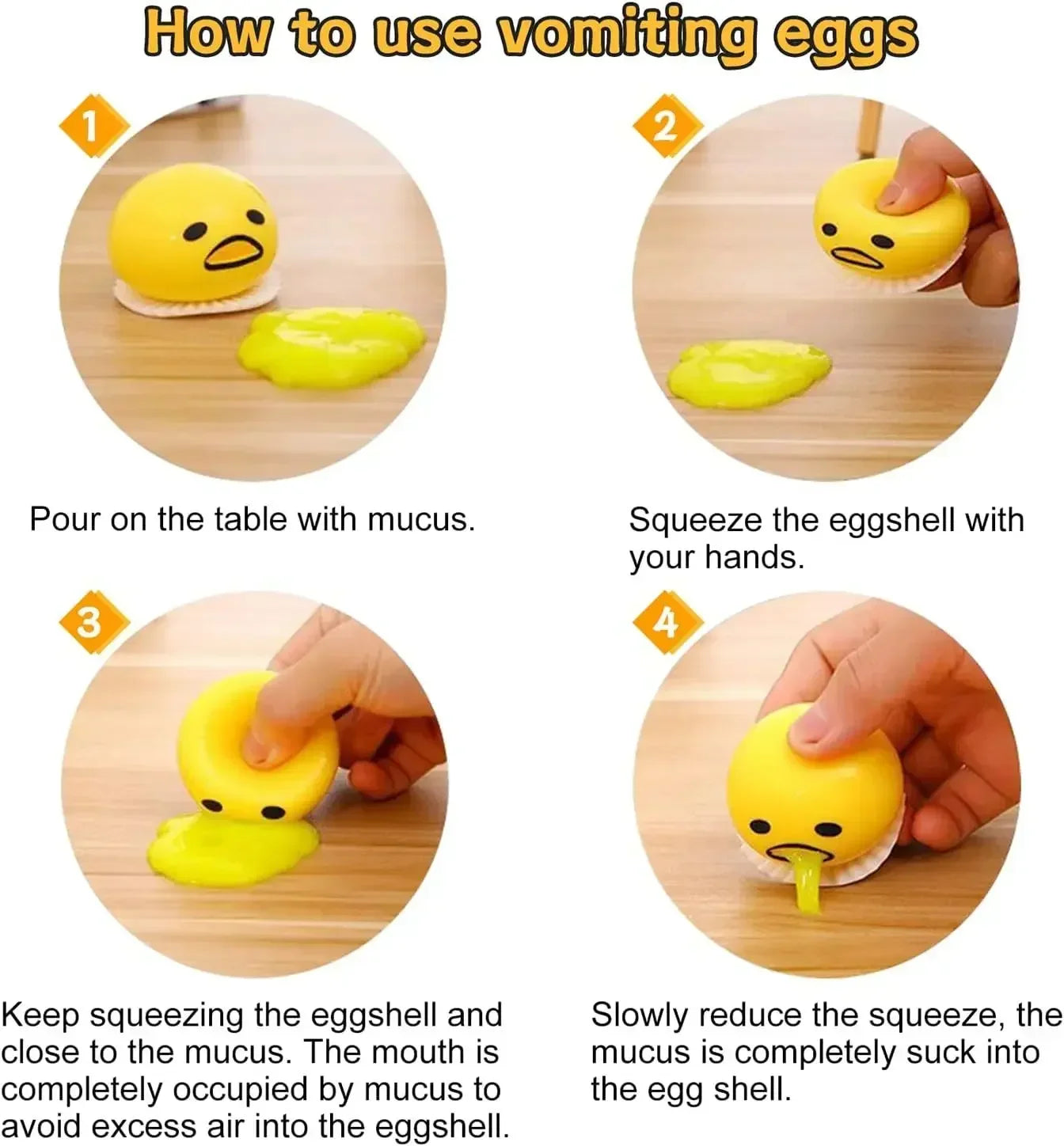 Introducing the Squishy Puking Egg Yolk Stress Ball! This incredibly amusing and uniquely designed stress relief toy is bound to bring a smile to your face. Filled with a vibrant, gooey yellow substance, it provides an oddly satisfying sensation each time you squeeze it, making it an irresistible choice for those seeking a fun way to alleviate stress.
