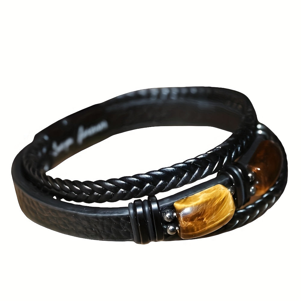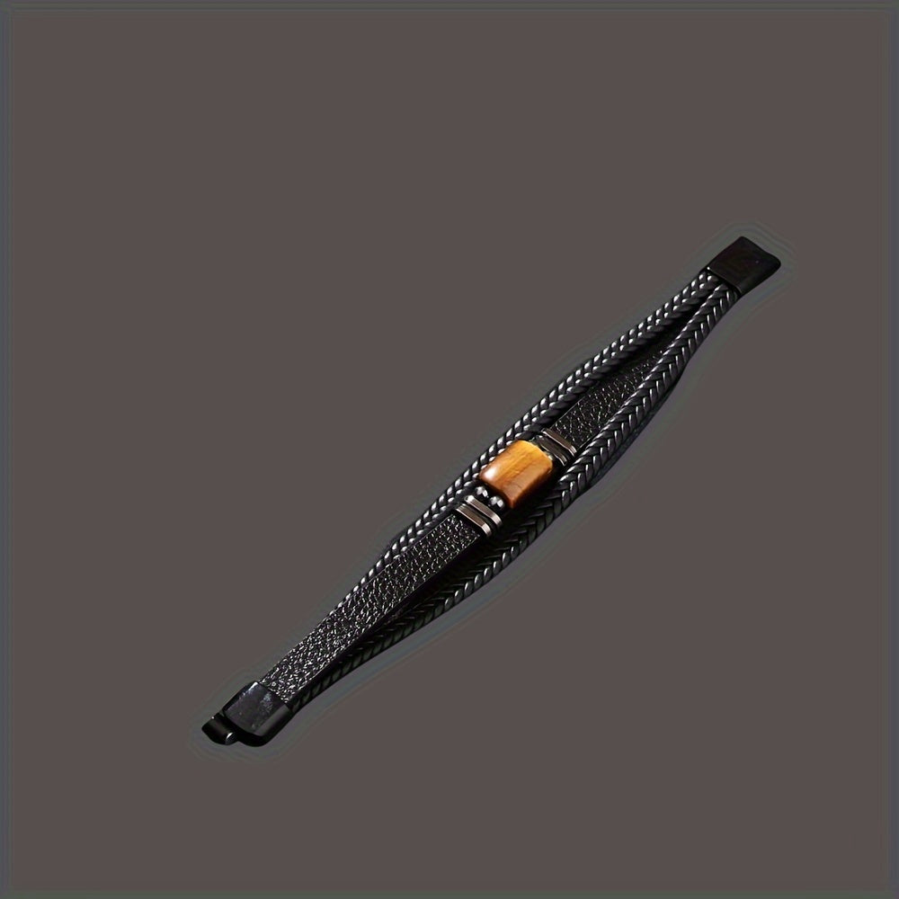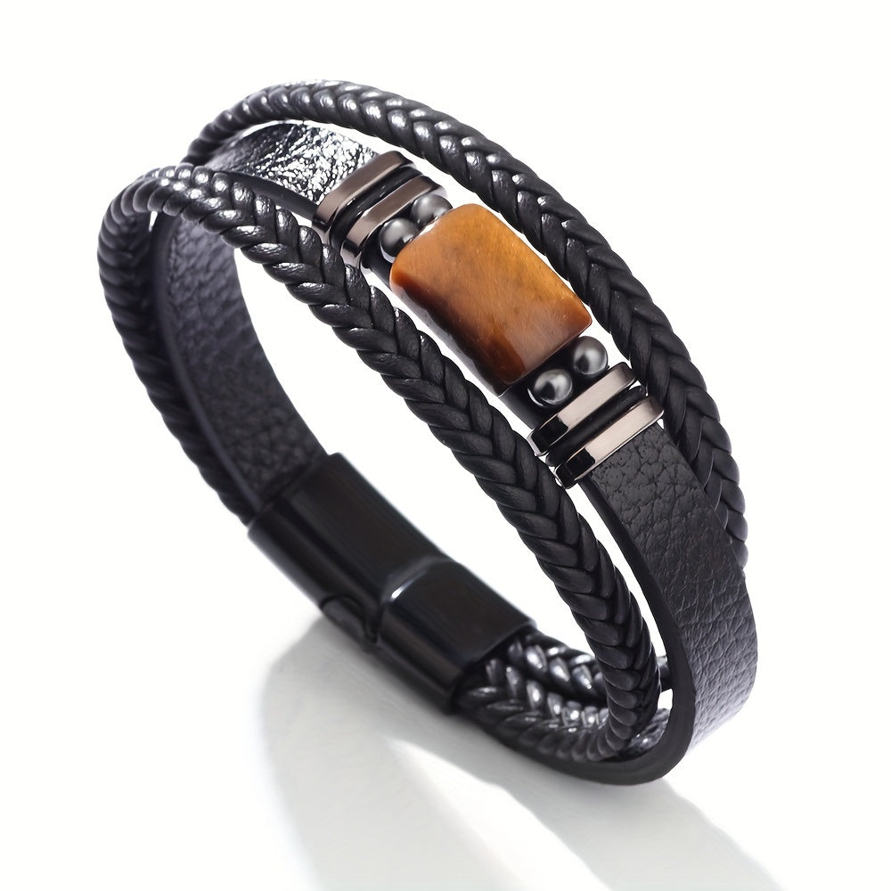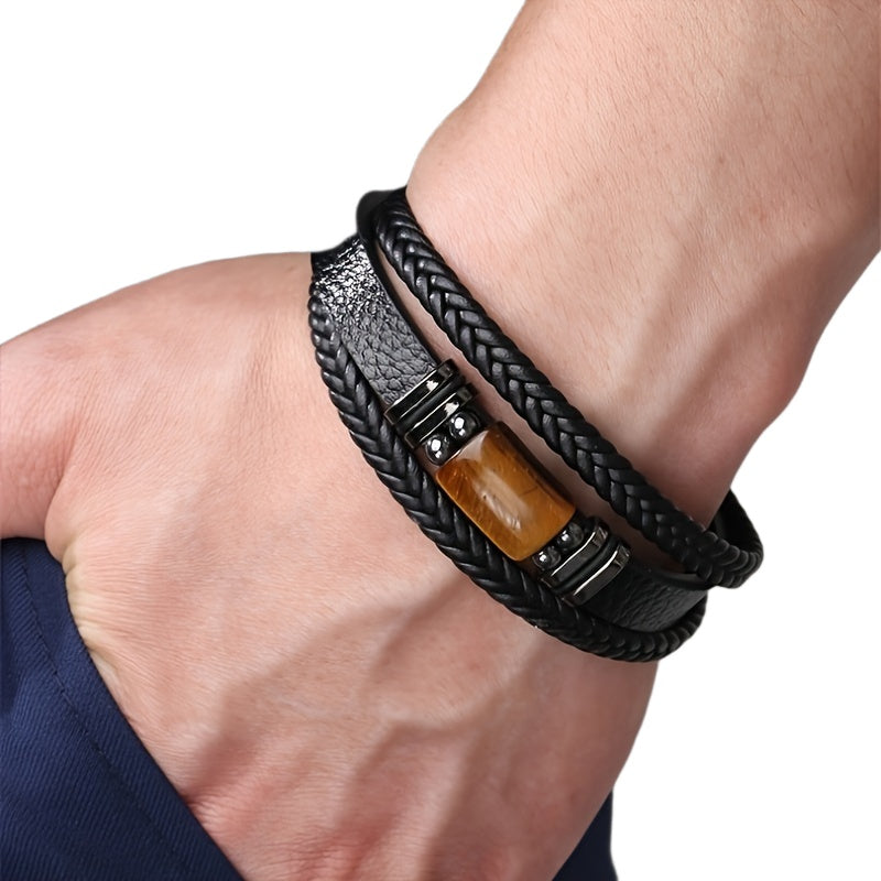 Tiger Eye Stone Bracelet Men's Multi layer Rope Faux Leather Bracelet Men's Jewelry