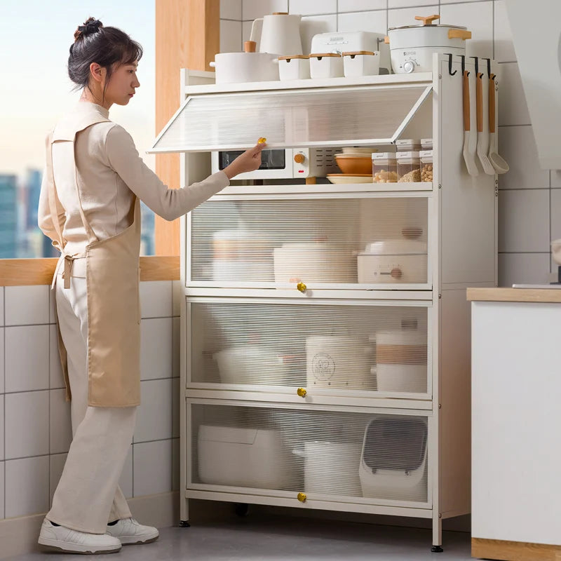 Elevate your kitchen organization with this tall pantry cabinet. With ample storage space for pantry essentials, dinnerware, wine glasses, and more, it offers versatility and functionality. This stylish unit doubles as a sideboard, providing both storage and display options. Transform your kitchen with this multifunctional piece of furniture, adding both elegance and efficiency to your space.