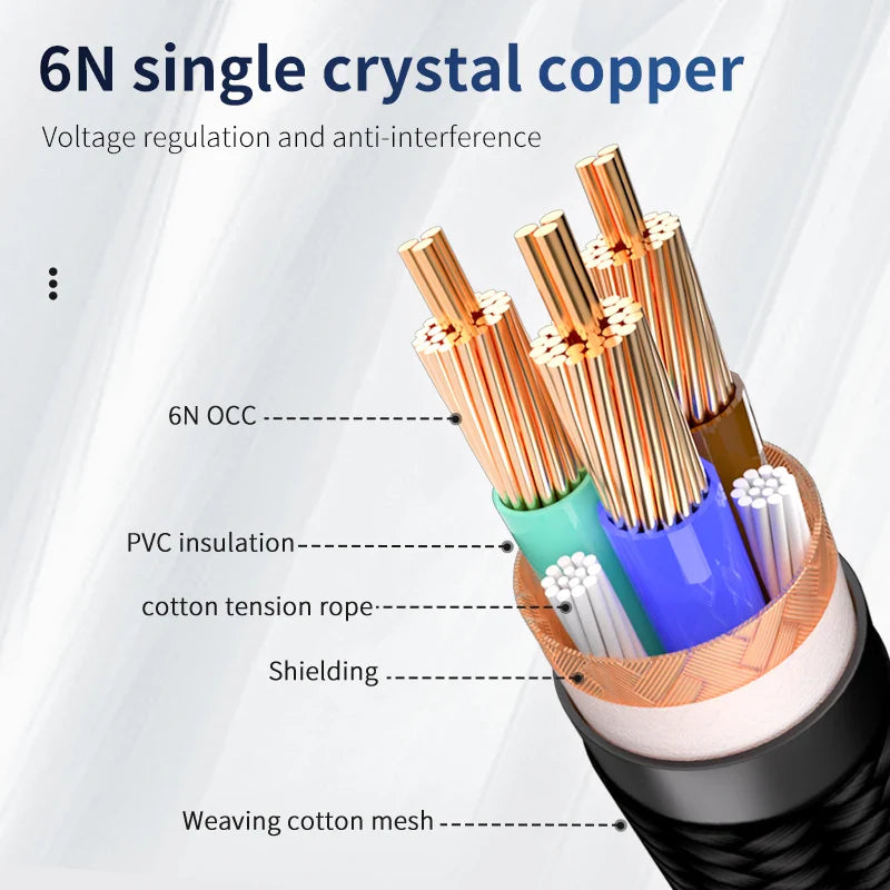 The cable is made of 6N standard high-purity single crystal copper conductor, which can make the cable have strong anti-interference ability.