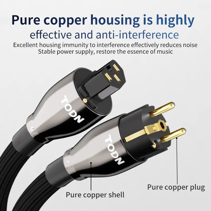 Elevate your audio experience with the TODN HIFI OCC Power Cable. Featuring Oxygen-Free Copper (OCC) construction, gold-plated plugs, and a V-series connection filter, this cable delivers high-end audio performance. Designed for US connections, it ensures clean power delivery to your audio equipment, reducing noise and enhancing sound quality. Upgrade your audio system with this premium power cable from TODN.