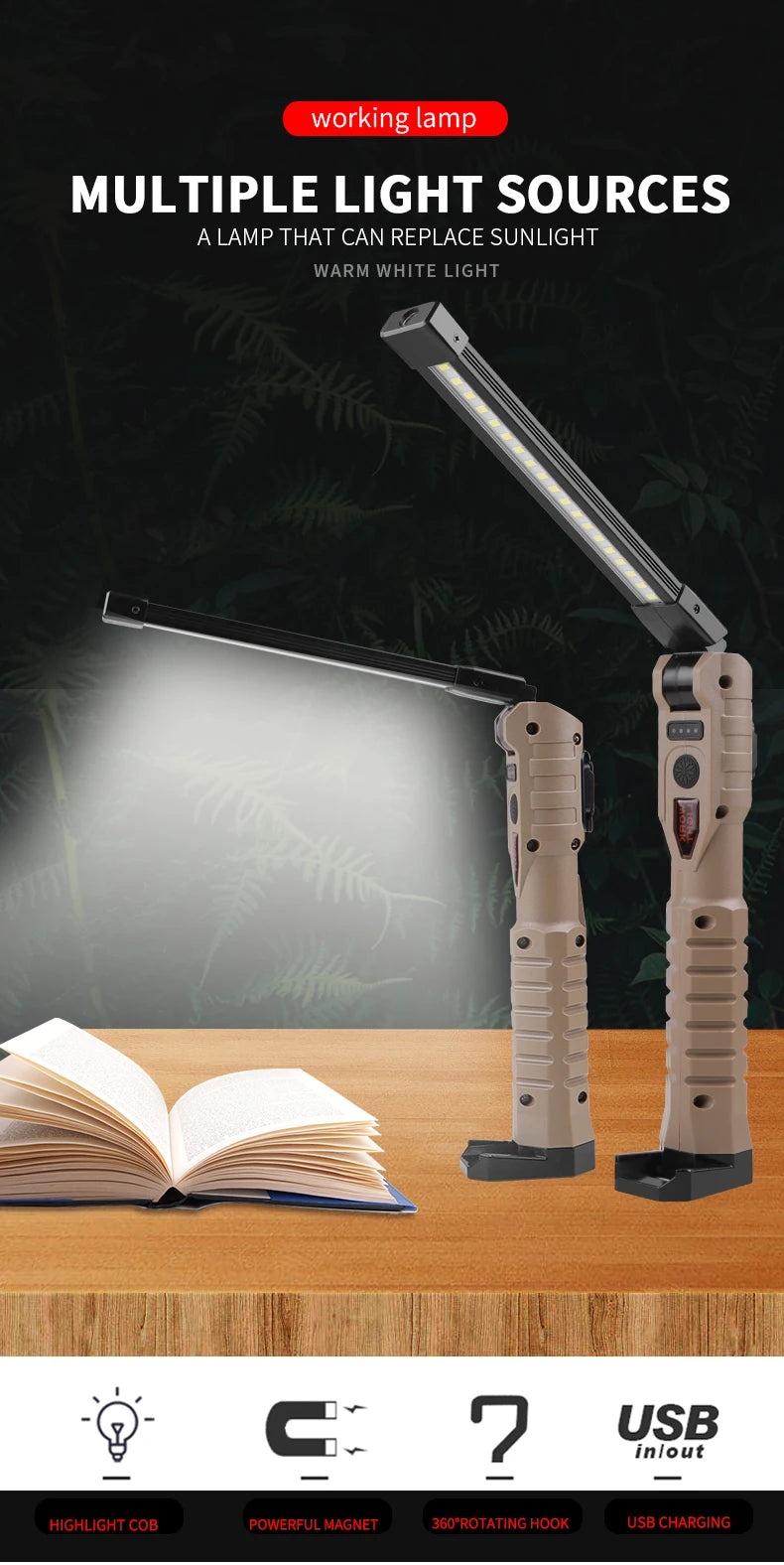Illuminate your outdoor activities with our USB Rechargeable LED Work Light. Boasting 1000 lumens of brightness and COB technology, this lantern provides ample light for car repairs and outdoor tasks. Featuring a power capacity indicator and handheld flashlight design, it offers versatility and convenience. With USB rechargeability, it's perfect for on-the-go use. Simplify your outdoor lighting needs with this reliable and portable work light.