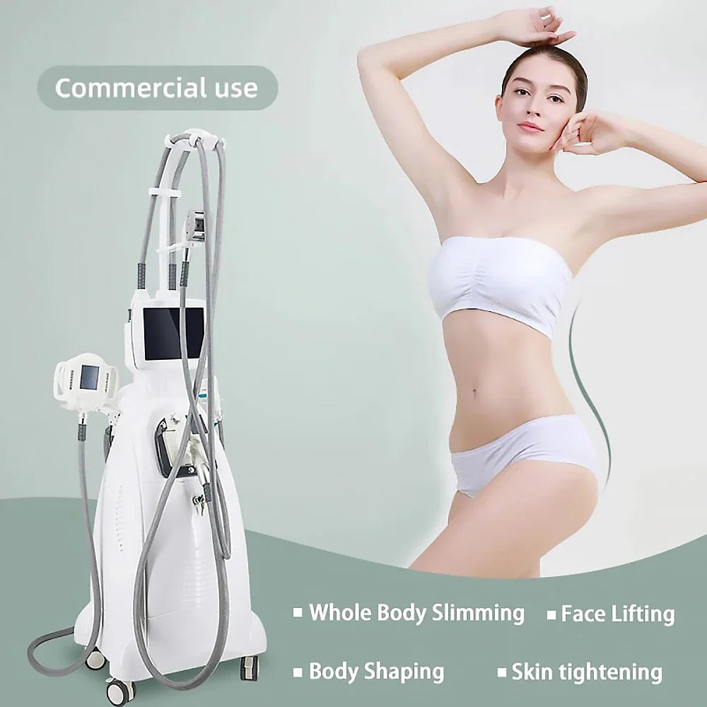 Introducing the Velabody Shape V5 Pro, a versatile 3-in-1 vacuum cavitation system for slimming and toning. This portable machine utilizes ultrasonic technology to target stubborn fat, promoting weight loss and skin tightening. Experience effective fat burning and body shaping with this advanced device, suitable for professional salons and personal use. Achieve your desired physique with the convenience and efficiency of the Velabody Shape V5 Pro.