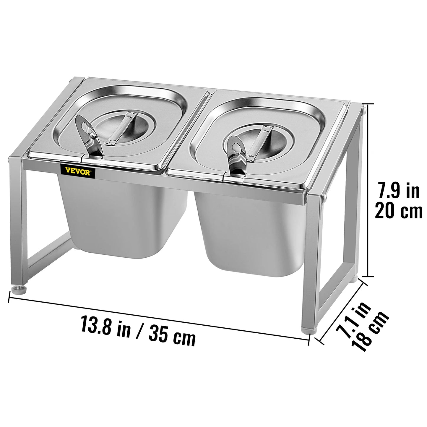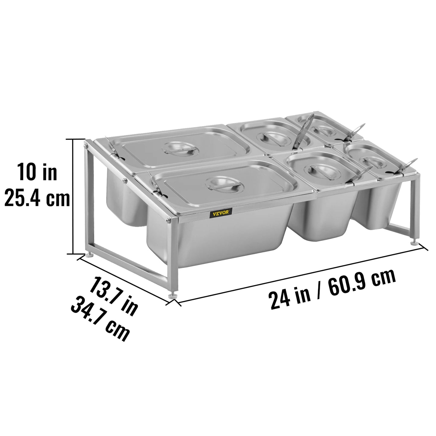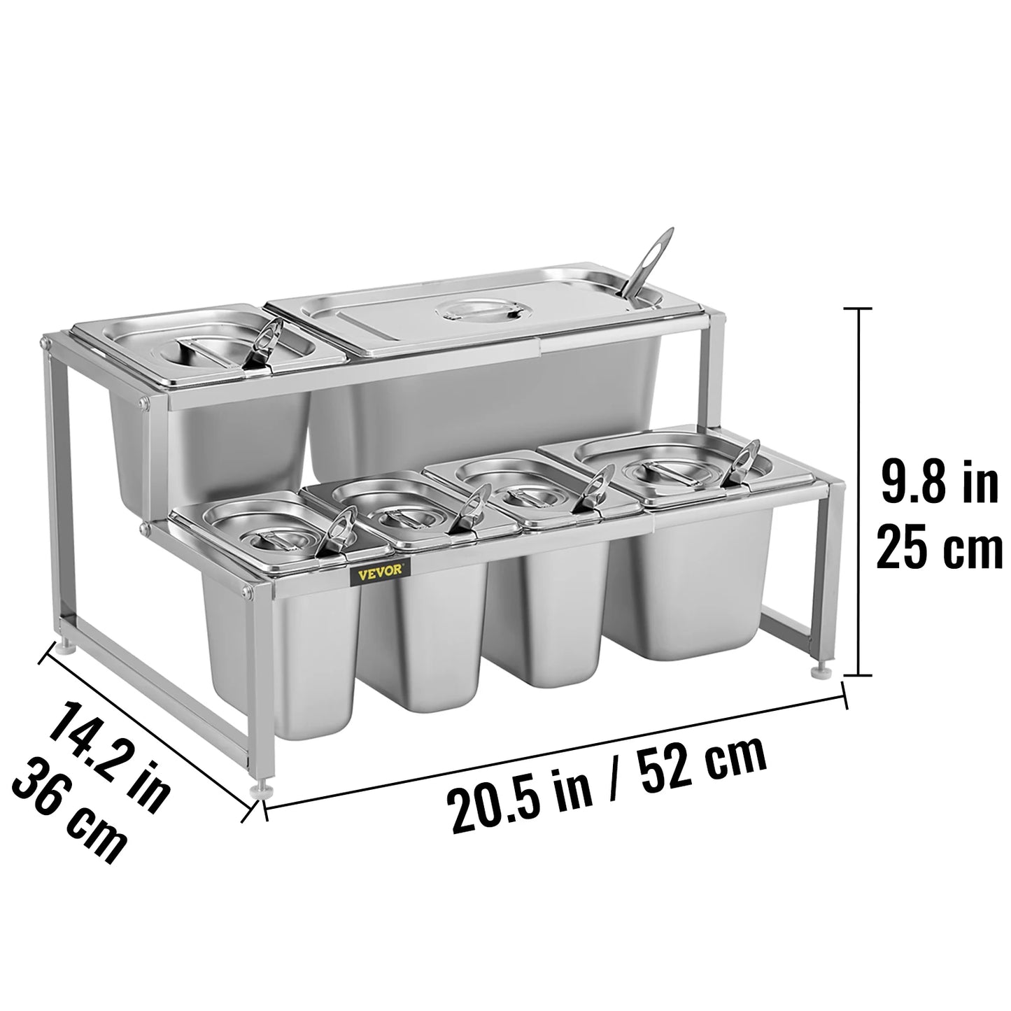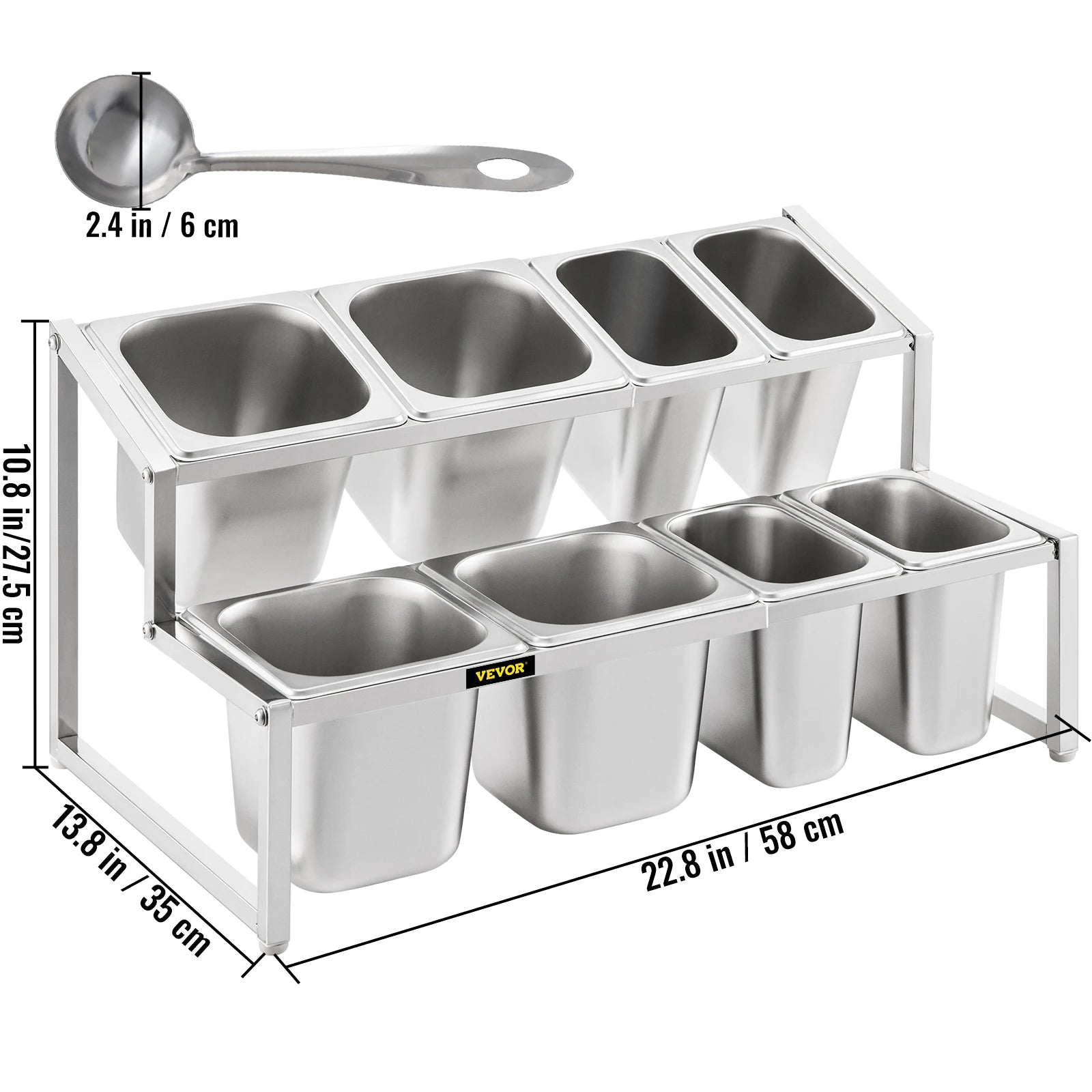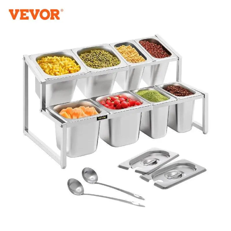 Organize your spices with ease using our VEVOR Commercial Spice Rack Seasoning Organizer. Made from durable stainless steel, this expandable shelf can accommodate 2 to 10 pans, providing ample space for storing various spices, food ingredients, and soup containers. Perfect for both commercial kitchens and home use, it helps keep your kitchen tidy and ingredients readily accessible.