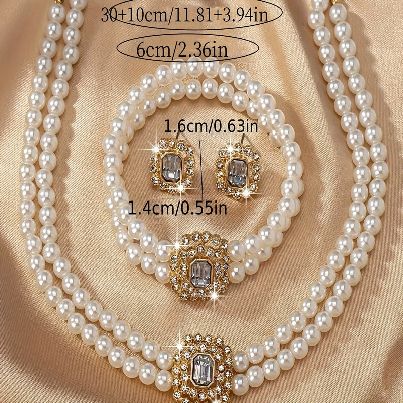 Vintage Luxury French-Inspired Double-Row Faux Pearl Jewelry Set