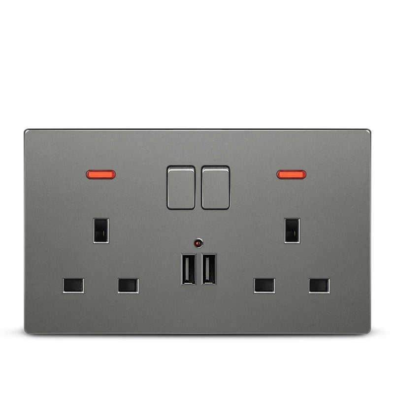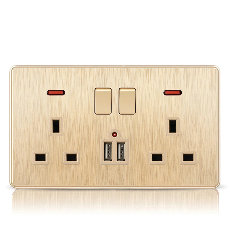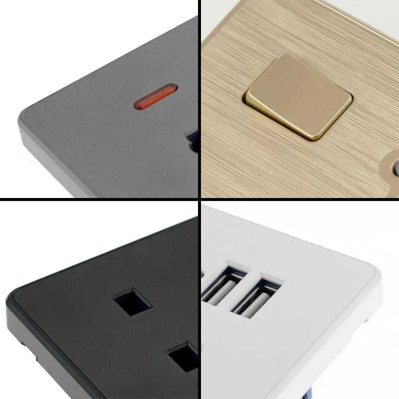 Upgrade your home's electrical setup with these stylish wall switches featuring UK sockets and built-in USB ports. Available in gold, white, black, or silver plastic panels, they complement any decor. Designed for use in Malta and compatible with 110-250V, these switches offer both convenience and functionality for charging devices while controlling lighting.