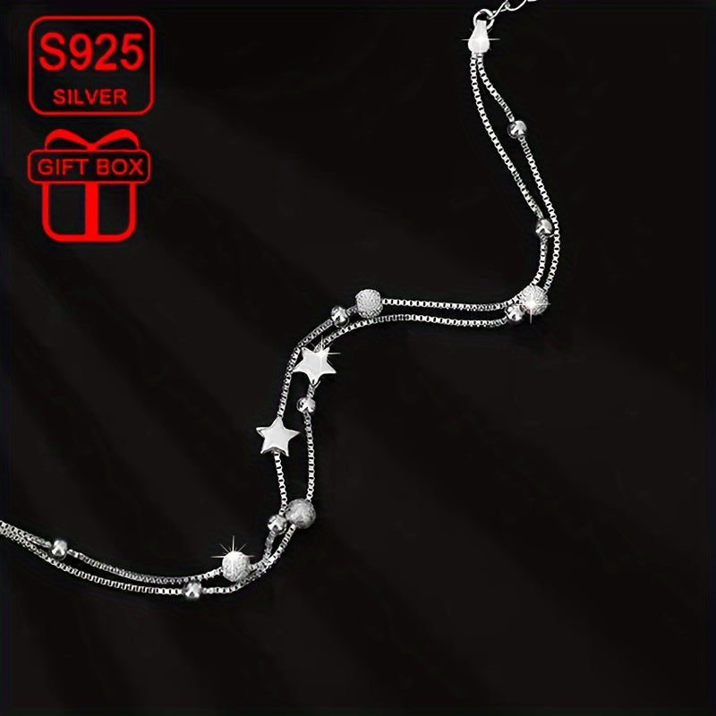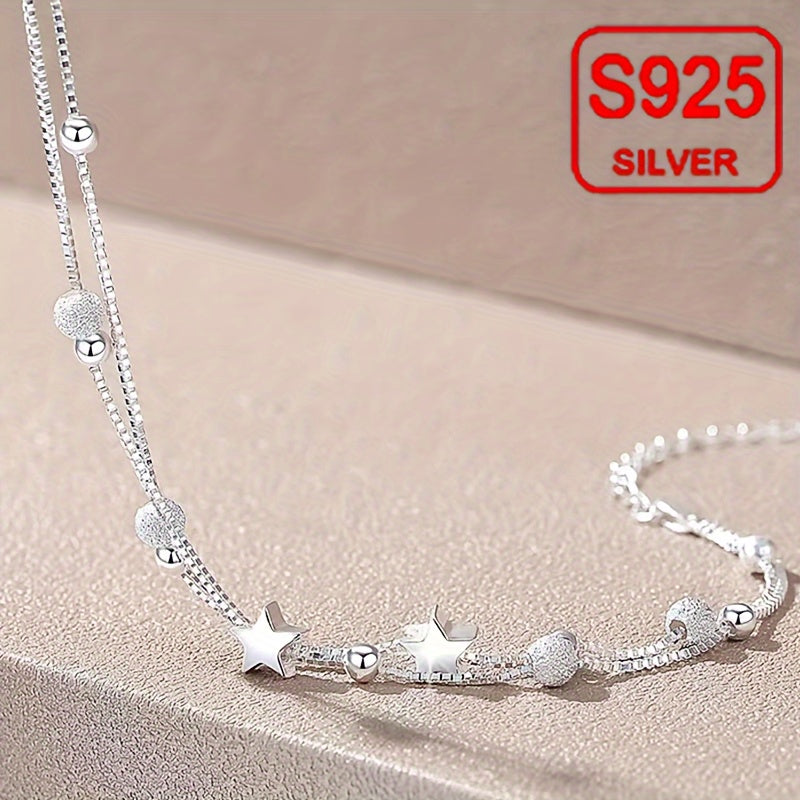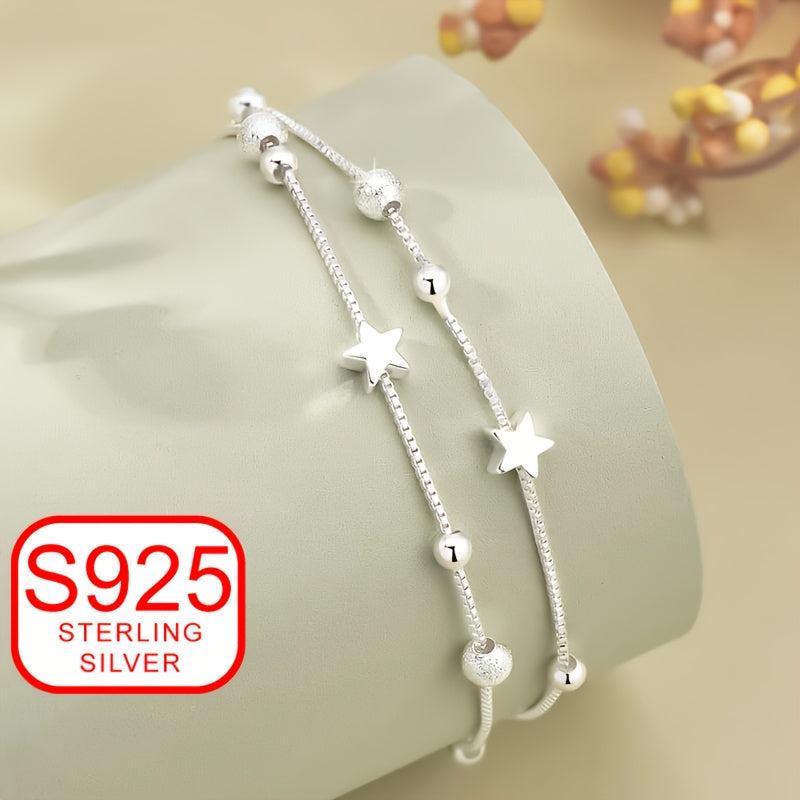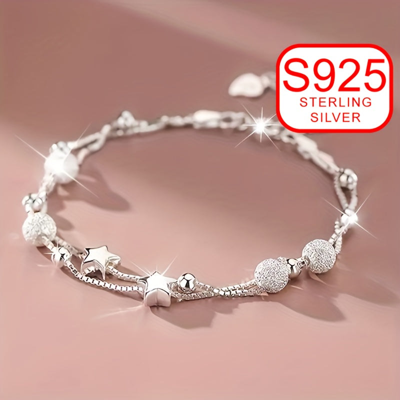 Women's Double-Layer Star Bracelet – 925 Sterling Silver, Hypoallergenic, Versatile Jewelry for Beach, Daily Wear, Weddings & Special Occasions, Perfect Gift for Mother’s Day, Valentine’s Day & Ramadan
