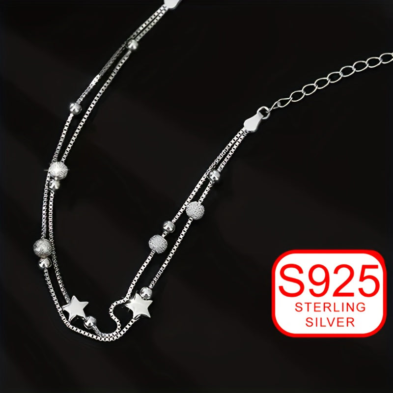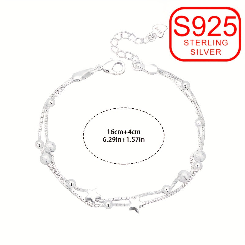 Add a touch of celestial beauty to your jewelry collection with this 925 Sterling Silver Double-Layer Star Bracelet, a perfect blend of elegance and versatility for any occasion.