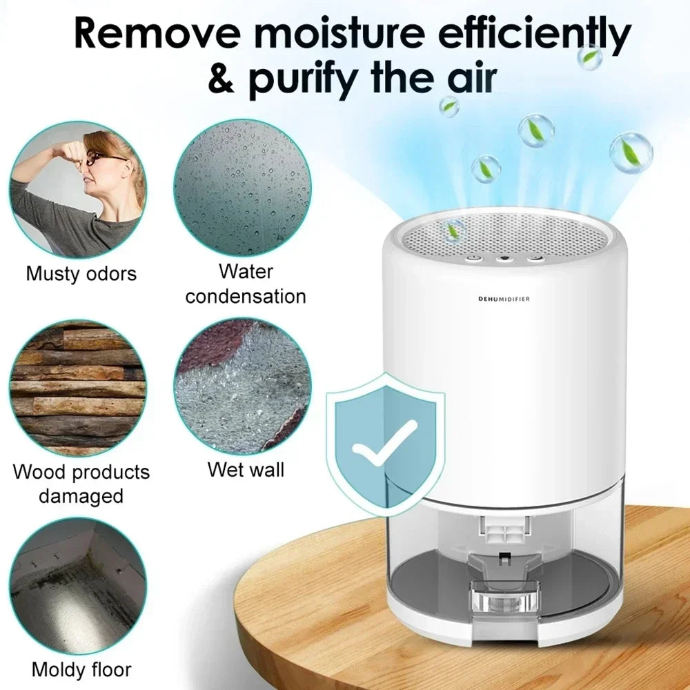 Mini Moisture Remove Machine Quiet Moisture Absorbent Dehumidifier Auto-Off Moisture Absorbing Machine Colorful LED Light Air Purification for Room Bathroom Bedroom